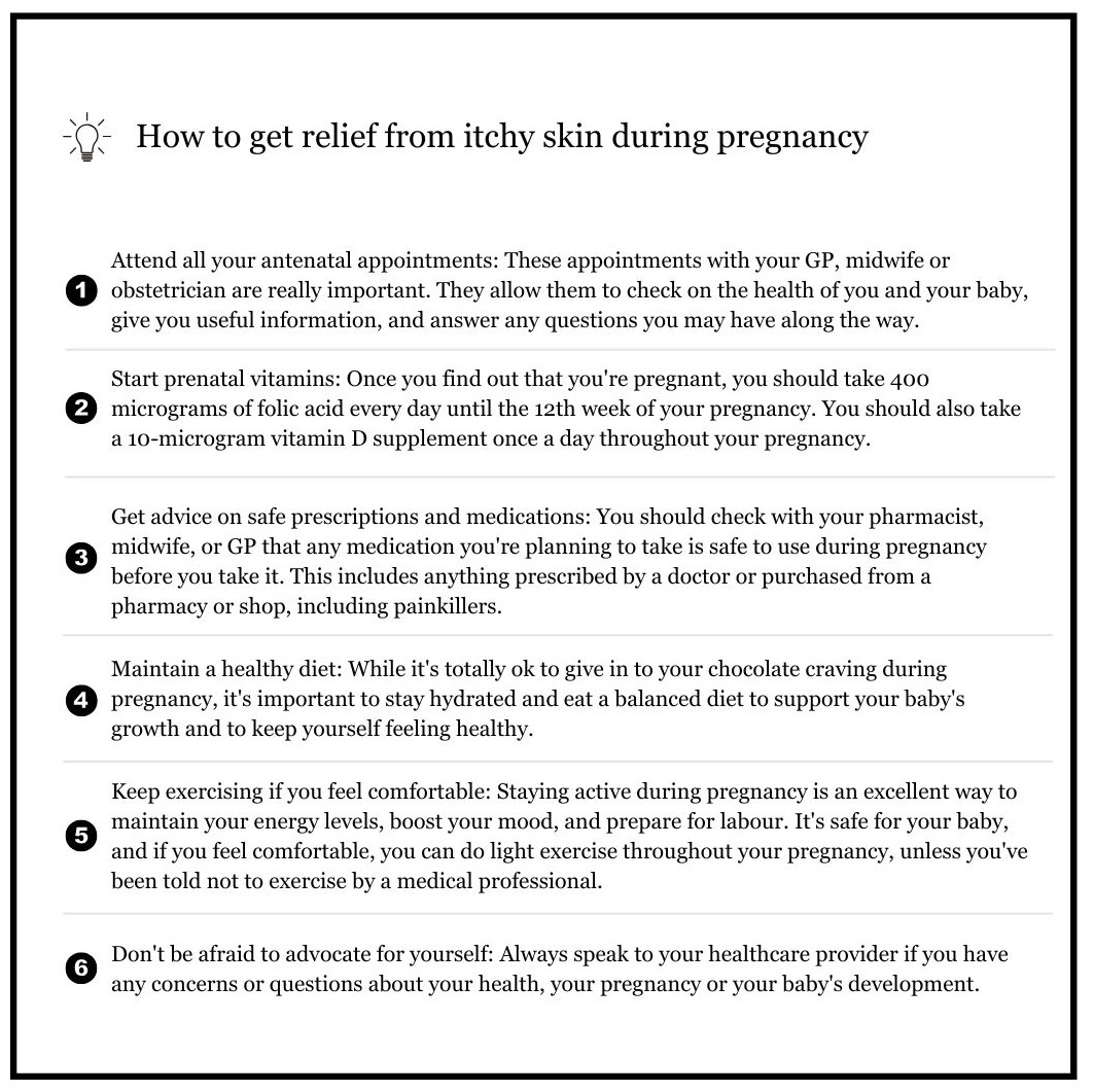 - Itching that’s worse at night: Some slight itching during pregnancy around your tummy is normal, but itching can also be a sign of a condition called intrahepatic cholestasis of pregnancy or ICP. You should speak to your doctor or midwife if you have itchy palms and soles of your feet that are worse at night.