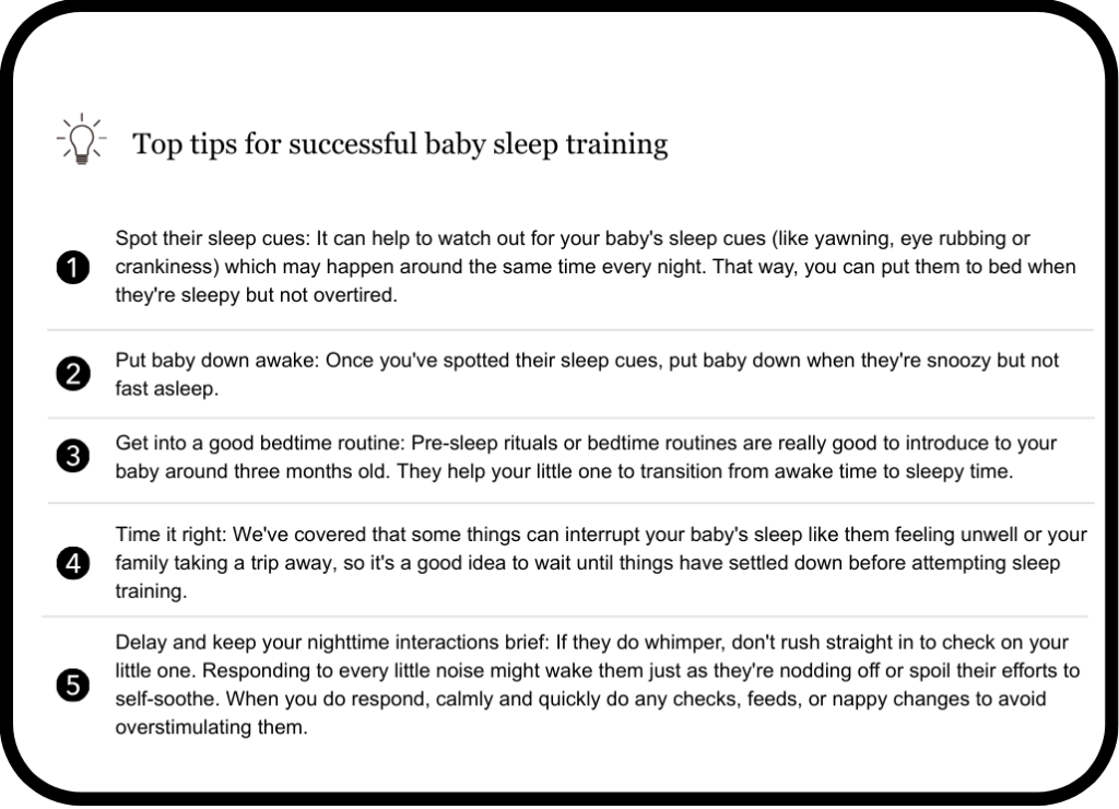 Top tips for successful baby sleep training