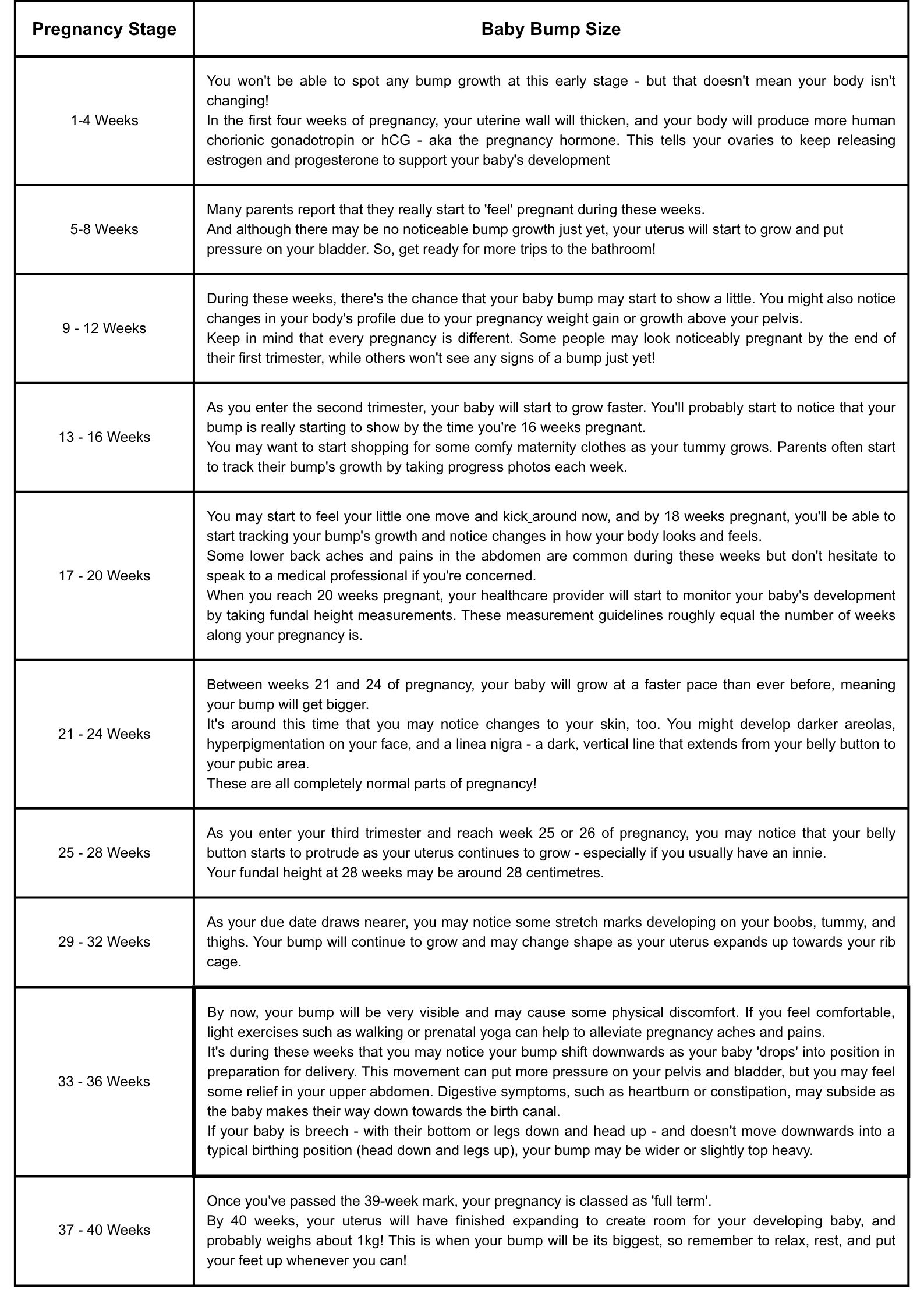 Let’s break down the weeks of pregnancy and run through a rough baby bump timeline…