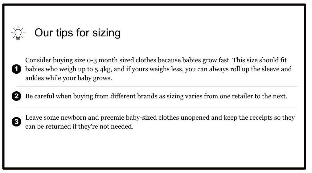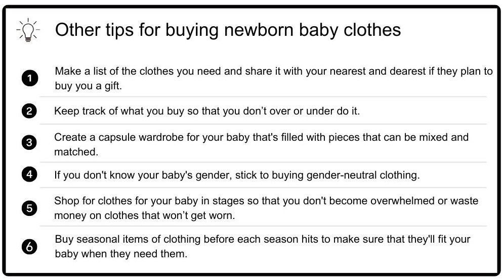 Just remember to avoid buying too many clothes in a newborn size as your baby will likely grow out of them fast.