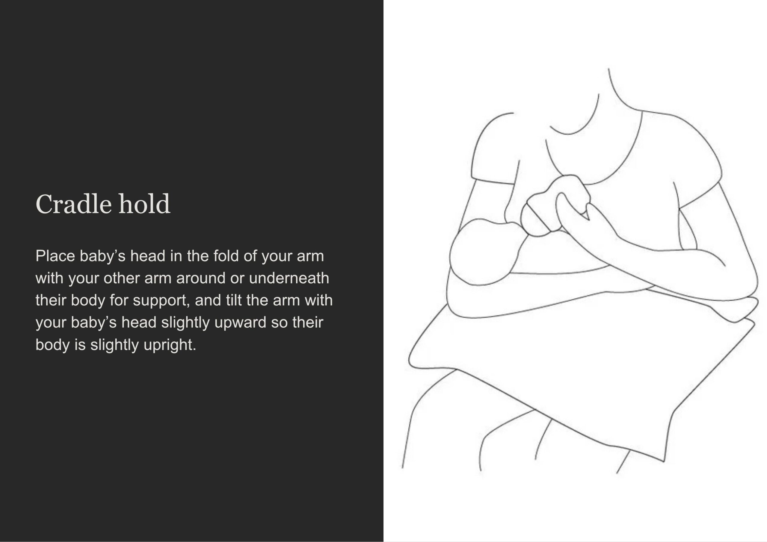 Sit yourself in a comfortable position with your baby close to you. Then, hold them in a one of the below positions.