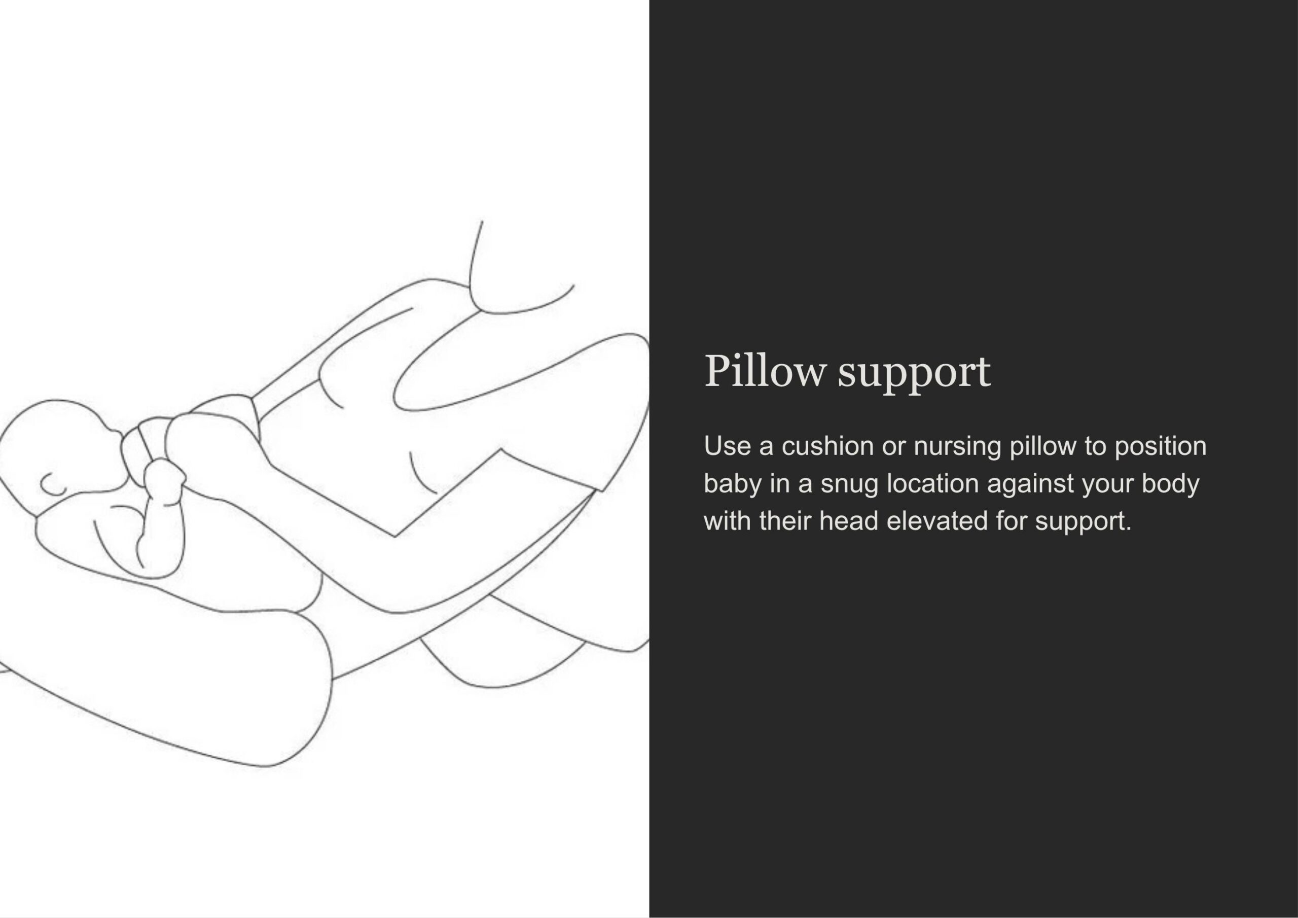 Make sure to support their head – this helps them breathe and swallow comfortably as they feed and prevents milk from leaking into their ear which can lead to an infection.