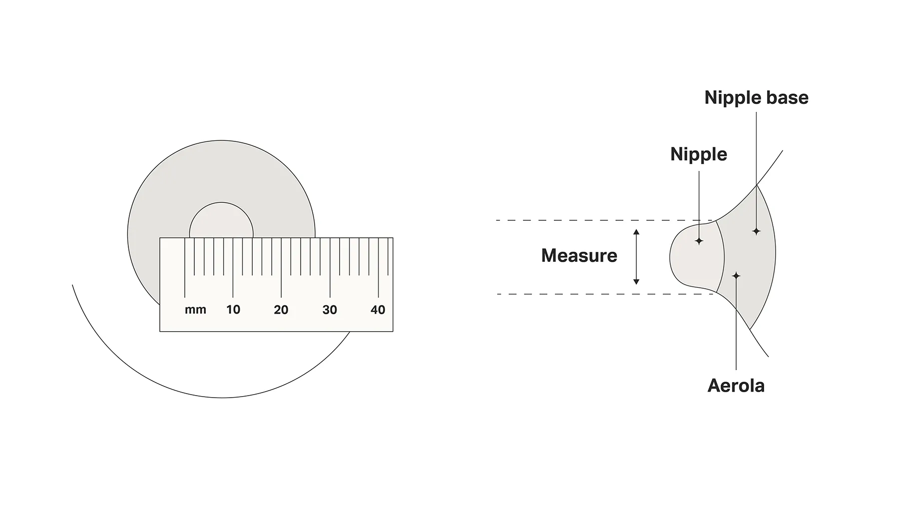- Once you have your measurement in millimeters, add 4mm to this measurement. This is because it’s better to have a larger breast shield diameter than your nipple base size so that when your breast pump is used and creates a vacuum, it’ll make your nipple slightly larger. Having a gap of about 4mm between your nipple and the breast shield allows for your nipple to expand comfortably while you’re pumping. So, if your nipple base measures 20mm across, the correct horn size for you is 24mm.