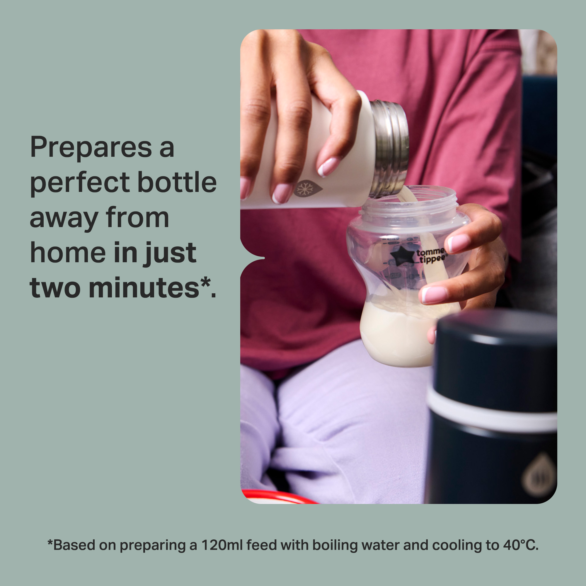 - Fresh Formula Feed: Use the hot flask to store boiling water and the cool flask to bring a fresh formula feed down to the perfect temperature in just two minutes* when you’re out.