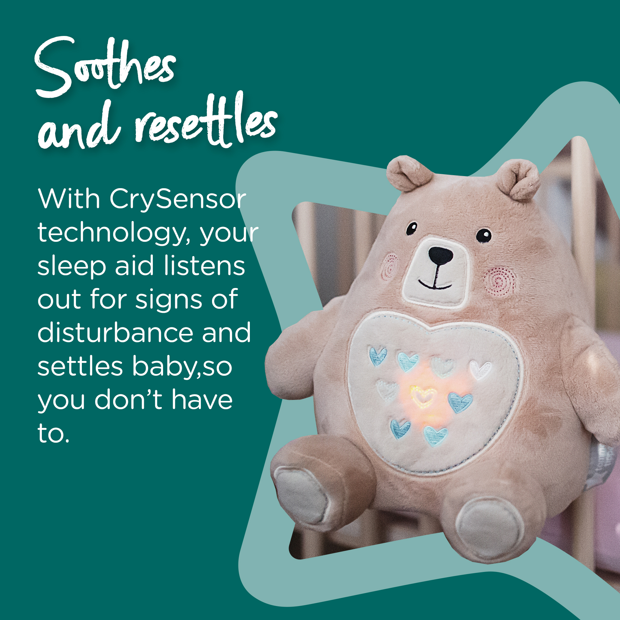 • Light and sound sleep aid: Our cute and cuddly night-time companion comforts and helps your baby learn how to fall asleep and resettle after waking, so you and your little one can get more sleep.