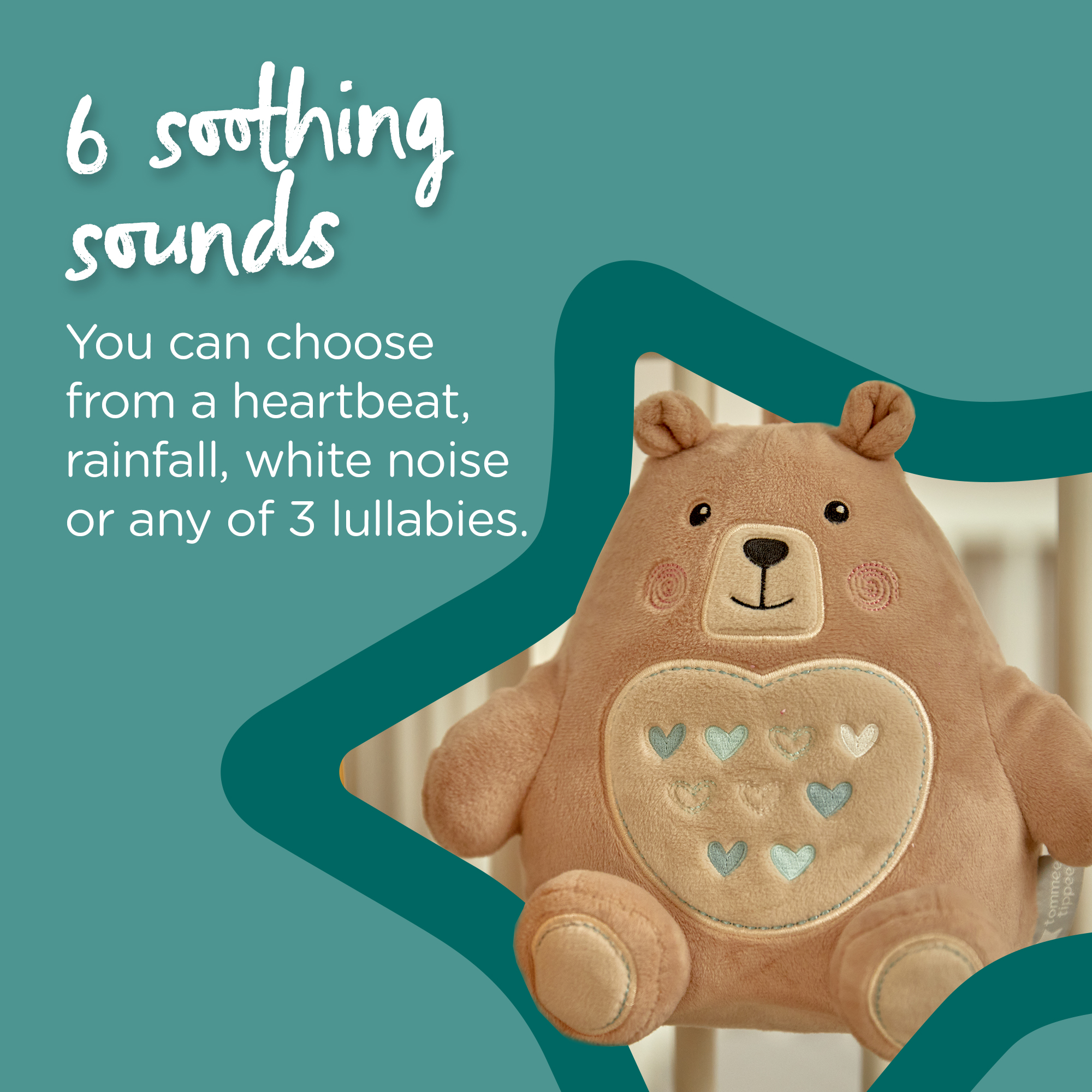 This cute and cuddly night-time companion will help you and your baby get a good night’s sleep. With a soft-glow nightlight, intelligent CrySensor and six soothing sounds and lullabies, your little one will be reassured and comforted as they go to sleep.