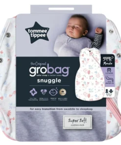 Unique design creates space for hip healthy natural leg position. Perfectly transitions your baby into their first Grobag. Made from supersoft and stretchy cotton, the GroSnuggle is available in two different weights – Light and Cosy, for different room temperatures. Babies love it!