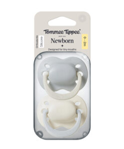 The tiny newborn dummy is designed for tiny mouths, with an extra-small teat and a curved, symmetrical shield that fits your newborn baby’s face any way up. It offers comfort and soothing from birth to 2 months.