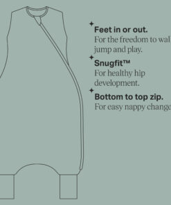- SnugfIt™: Slim fitting through the chest, with a roomy, hip-healthy bottom to allow your baby to adopt a natural “frog-legged” sleeping position, which is important for correct hip development.