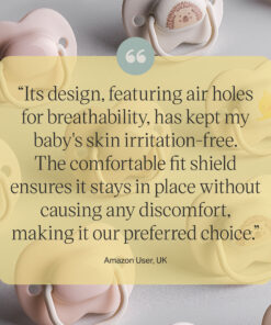 - Kind on baby’s skin: The curved shield ensures a comfortable fit between baby’s nose and chin and the large holes allow extra air flow and prevent moisture build-up to help prevent skin irritation.