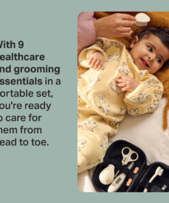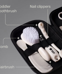 - Nine healthcare and grooming accessories: Includes 1x digital oral thermometer, 1x hairbrush, 1x comb, 1x nail scissors, 1x nail clippers, 1x nasal aspirator, 1x toddler toothbrush and 2x emery boards.
