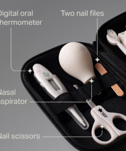 - Baby healthcare kit: All the essential items needed to care for and groom your child from birth to toddler, all neatly stored in a handy and stylish carry case.