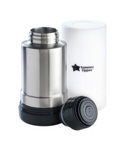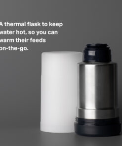 The stainless steel, thermal insulated flask safely stores hot water and keeps it hot so it’s ready to heat your baby’s next feed. It fastens with a secure lid that prevents hot water from leaking into your bag and is made from BPA and phthalate free materials.