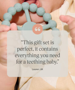 When teething begins, the soft, textured teething ring—specially shaped for little hands—helps soothe sore gums and new teeth, making it ideal for babies aged 3 months and up. Each piece is made from 100% food-grade silicone that resists dust and dirt thanks to its anti-static properties, and everything in the set is safe for both the dishwasher and steriliser.
