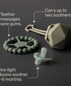 - 3 stylish soothing staples to calm, carry and chew: This original Ultra-light soother, matching soother carry case, and teething ring make a perfect gift for a new parent (and their baby).