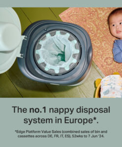 The only bin that twists and wraps for guaranteed odour protection. The Twist & Click nappy disposal bin provides guaranteed odour and germ protection to keep your home fresh and smell-free. Includes one pre-loaded refill cassette. Now more eco-friendly, our multi-layer antibacterial film is now bio-based and made from sustainably sourced sugar cane GREENFILM™.