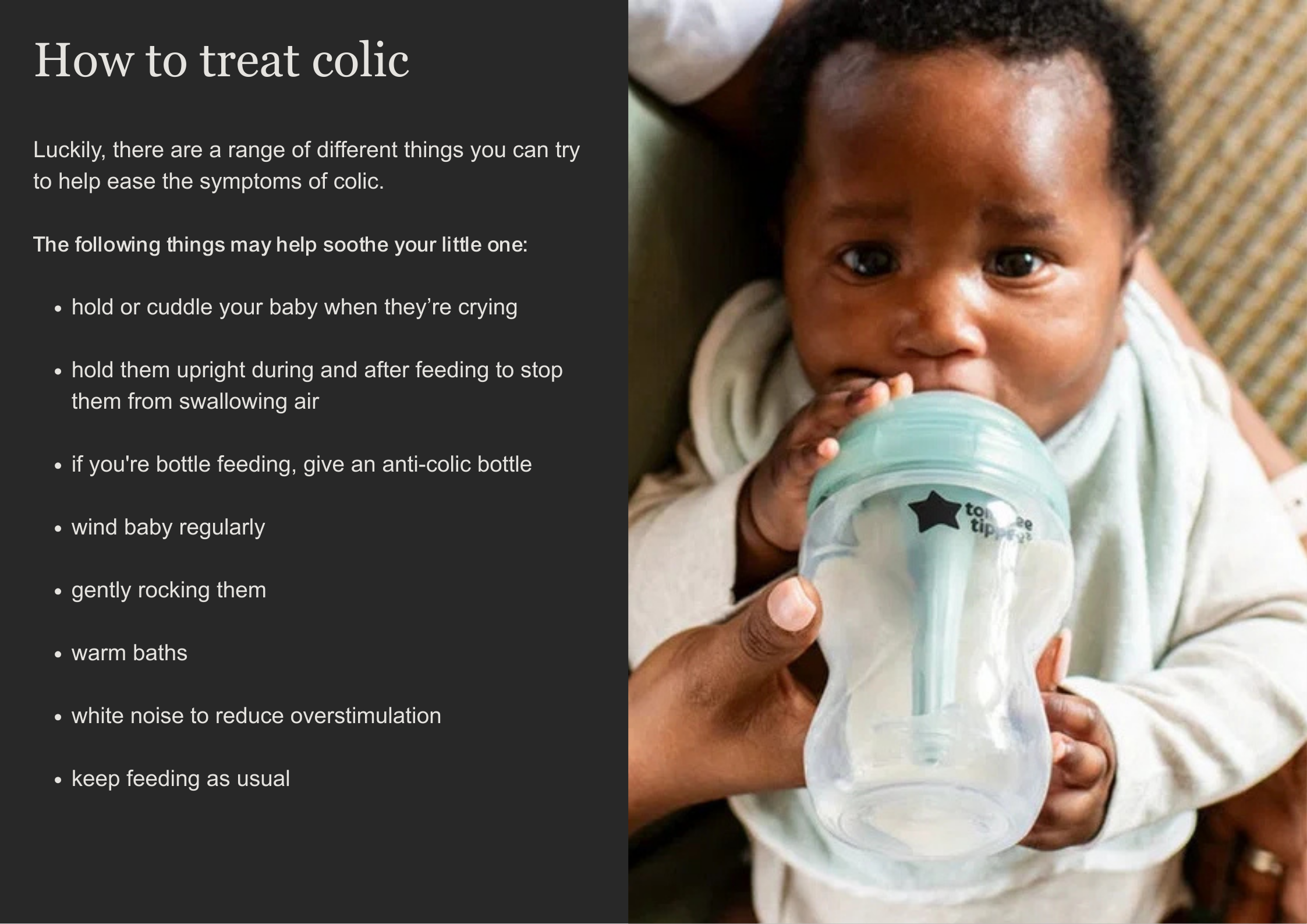 Even though it can be really difficult to cope with, it’s key to remember that colic is not a serious medical condition and will eventually pass on its own. However, it can be very distressing for both the baby and the parents.