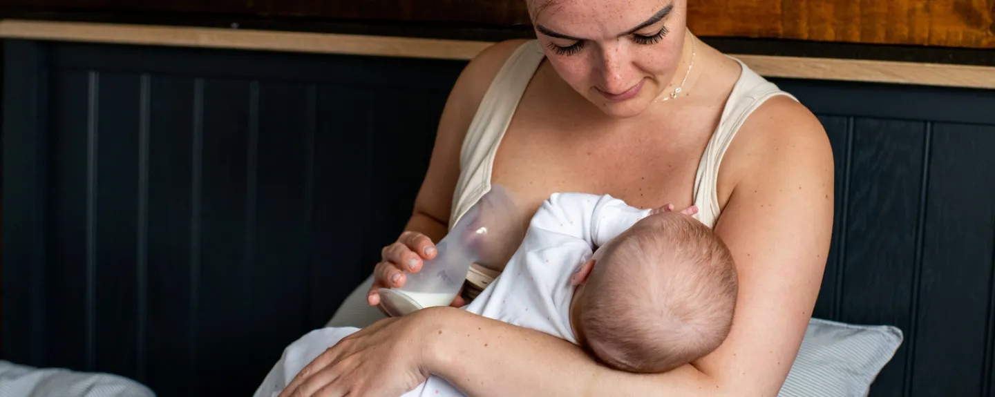 Latching on is the process of getting your little one to suckle around your nipple and areola so they can feed properly. Think of your areola as a target for your baby’s mouth and try to get them right in the bullseye! Your baby should be pressing against this target to trigger the milk flow and establish a strong milk supply for your feeding journey.
