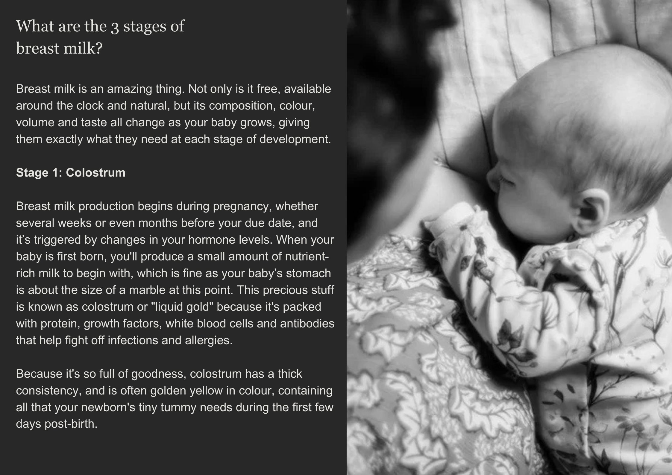 So, to give you a clear view of what’s to come, we’ve put together this guide of the different stages of breast milk production, and it’s benefits to help you through the process.